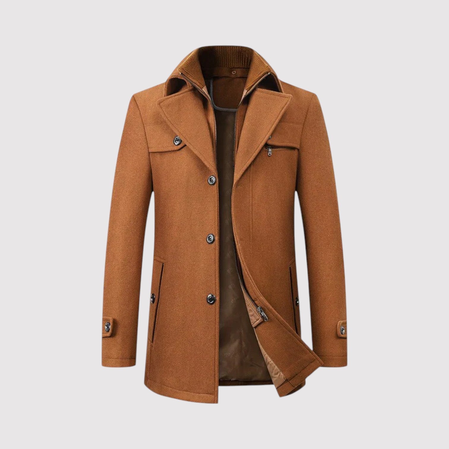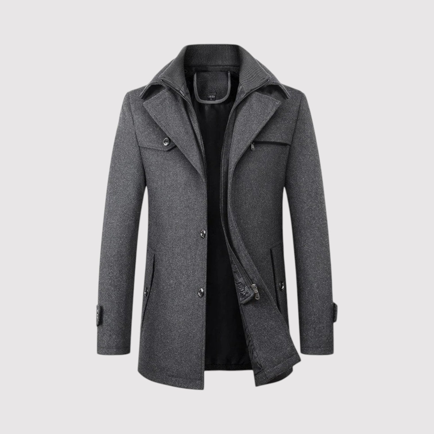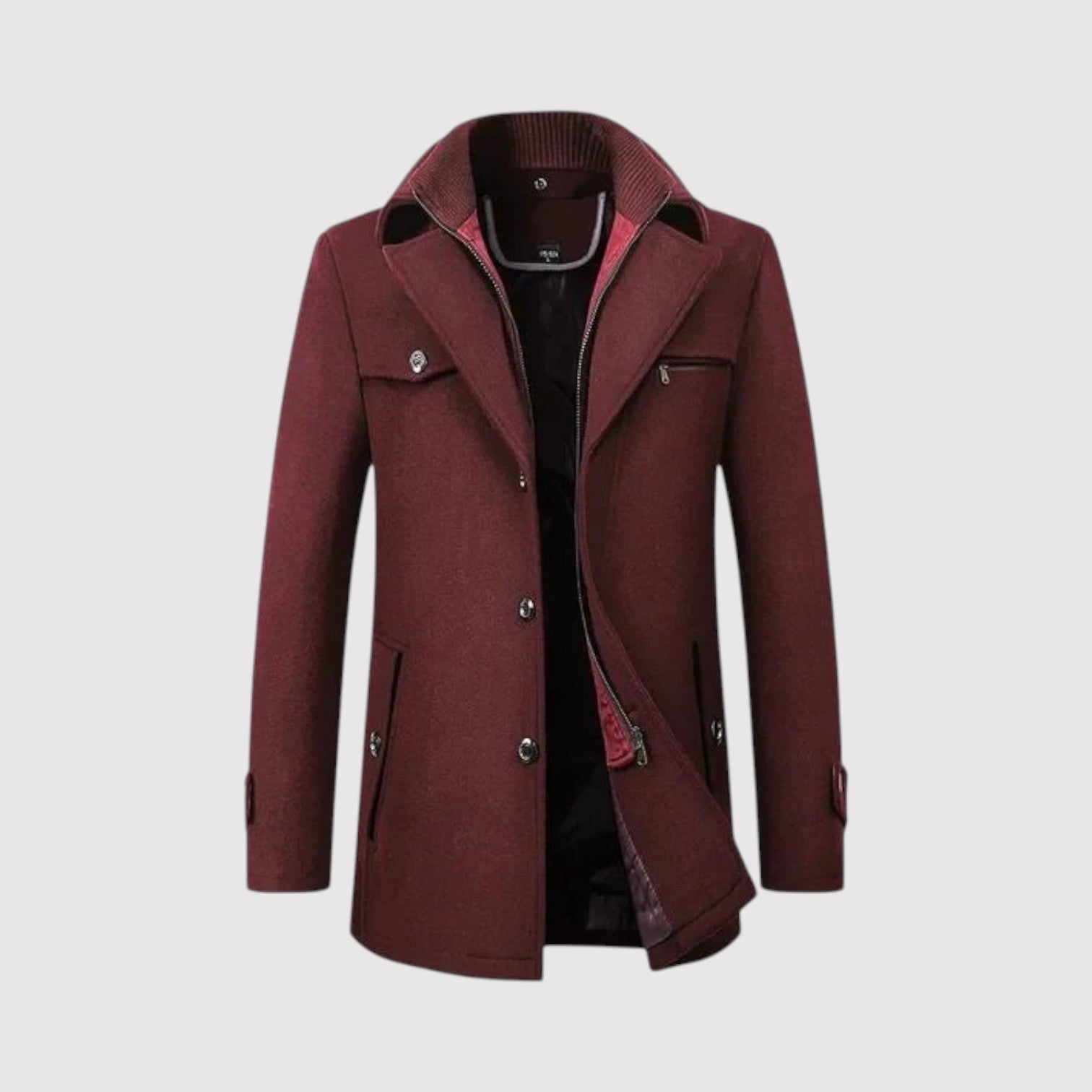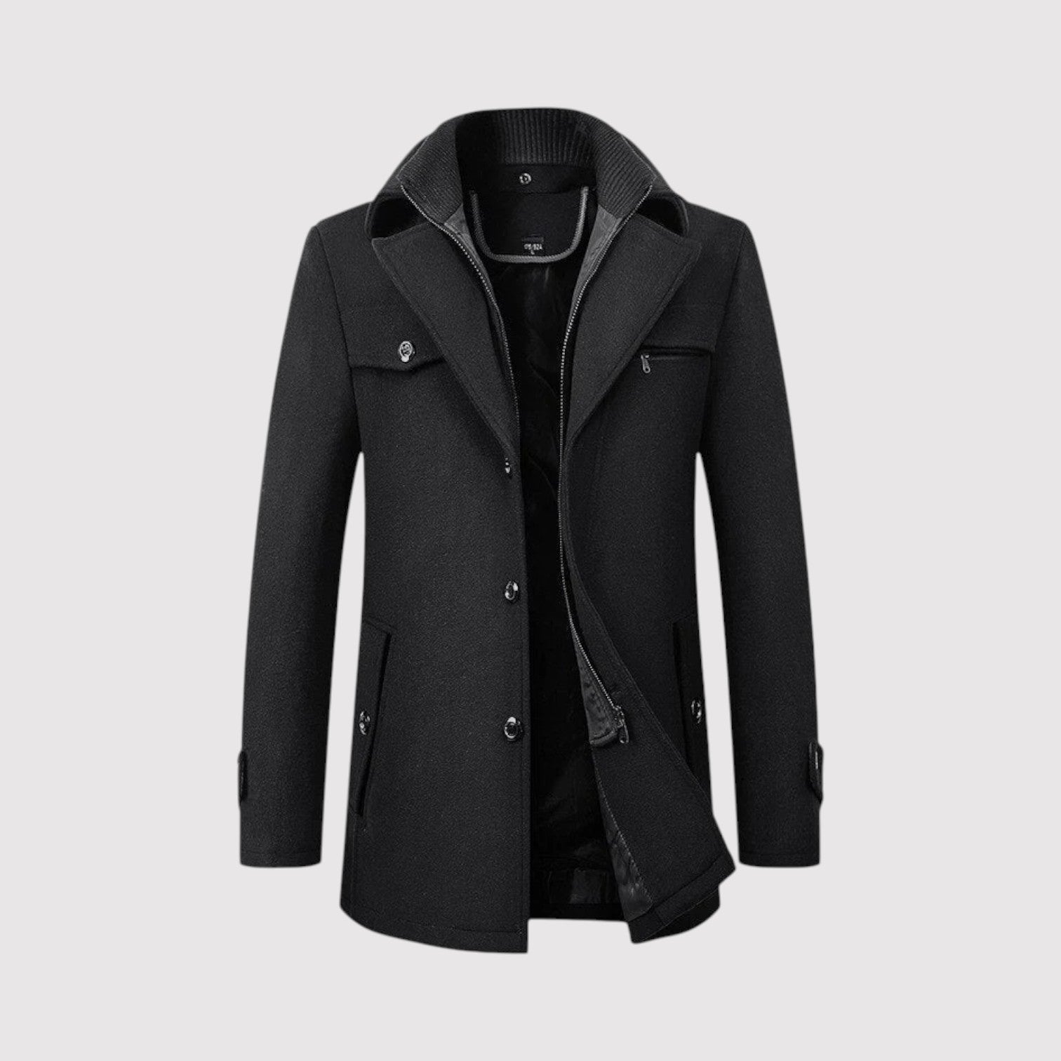 Step into the season with confidence and clean, tailored style in the Derek | Structured Winter Coat. With its refined silhouette, inner stand-collar layer, and smooth, modern finish, this coat delivers the perfect blend of sophistication and warmth. Ideal for workdays, evenings out, and everything in between, it’s designed for men who want to look sharp while staying comfortably protected from the cold.